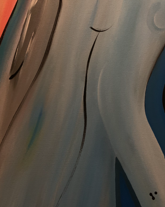 Dieses beeindruckende Werk spielt mit Licht, Schatten und der Eleganz von Linien. In einer monochromen Palette aus Grau- und Schwarztönen entsteht die Andeutung einer menschlichen Figur, subtil und abstrakt zugleich. Die fließenden Formen auf der Leinwand wirken wie ein Tanz aus Bewegung und Stille, eine Symphonie aus Linien und Schatten. Die rechte Seite des Bildes zeigt sanft geschwungene Kurven, die an ein wehendes Gewand oder die Silhouette einer Frau erinnern. Der Kontrast zwischen helleren und dunkleren Bereichen verleiht dem Werk eine räumliche Tiefe und erzeugt das Gefühl von Stoff, der sich im Wind bewegt. Es ist, als würde die Figur sich in einer anmutigen Drehung befinden, verborgen hinter einem Schleier von Licht und Nebel. Die linke Seite, mit einer deutlicher hervortretenden Kurve, verleiht dem Kunstwerk eine Balance und betont die Präsenz der Figur. Diese Linien erzählen von Kraft und Zartheit zugleich – ein Spiel zwischen fester Struktur und freiem Fluss. Das Gesamtbild symbolisiert die Vergänglichkeit und Schönheit von Bewegung, wie der Tanz eines unsichtbaren Wesens oder die Spur eines Augenblicks, eingefroren in Farbe. Es vermittelt ein Gefühl von Ruhe, Geheimnis und Zeitlosigkeit. Emotionale Wirkung: Das Bild wirkt sowohl beruhigend als auch inspirierend und lädt den Betrachter dazu ein, die verborgenen Formen zu entdecken und eigene Interpretationen zuzulassen. Es zelebriert die Schönheit der Abstraktion und zeigt die Magie, die in Linien und Licht verborgen liegt.